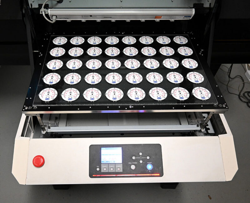 Add value to your machinery and set it apart from the competition with a custom dial face! Using our state-of-the-art Mimaki digital printer, we have the capabilities to generate in-house custom dials on demand. This shortens lead time, reduces minimum runs and allows for custom layouts to fit your needs. Some examples of benefits range from improving product uniformity by adding your logo or increasing safety and visibility to the end user through the addition of color zones.